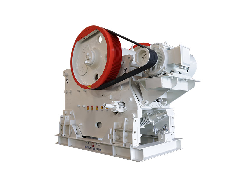 CJ系列顎式破碎機(jī)工作時(shí)采用的是曲動(dòng)擠壓型的工作方式,電動(dòng)機(jī)驅(qū)動(dòng)皮帶輪傳動(dòng),通過(guò)偏心軸使動(dòng)顎前后上下運(yùn)動(dòng)。當(dāng)動(dòng)顎上升時(shí),肘板與動(dòng)顎間夾角變大,從而推動(dòng)動(dòng)顎板向固定顎板接近,同時(shí)物料被壓碎或劈碎,達(dá)到破碎的目的;當(dāng)動(dòng)顎下行時(shí),肘板與動(dòng)顎夾角變小,動(dòng)顎板在拉桿和彈簧的作用下,離開(kāi)固定顎板,此時(shí)已破碎物料從破碎腔下口排出。隨著電動(dòng)機(jī)連續(xù)轉(zhuǎn)動(dòng),破碎機(jī)動(dòng)顎作周期運(yùn)動(dòng)壓碎和排出物料,實(shí)現(xiàn)連續(xù)生產(chǎn)。